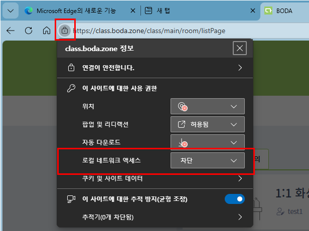 최신 웹 환경에서 화상솔루션 접속 시 ‘로컬 네트워크 연결’ 허용을 요청하는 팝업이 표출됩니다.